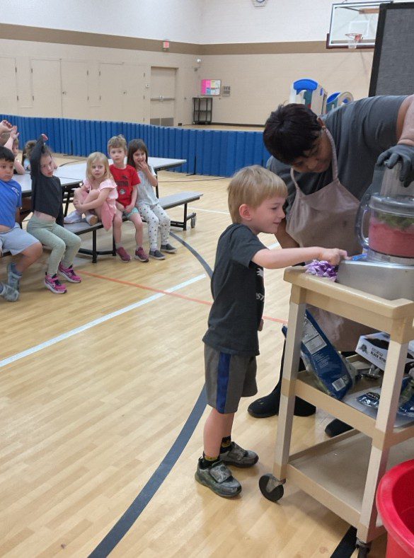 Our Kitchen Manager leads an introductory cooking course for our Pre-K students. These children are learning safe food practices as well as tasting various recipes.